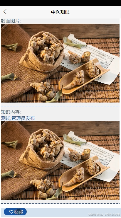 用户点击中医知识按钮,可以进入中医知识列表,点击感兴趣的中医知识,进入中医知识详情页面,用户可以进行查看、点赞、收藏、评论等操作,界面如下图4-4所示。