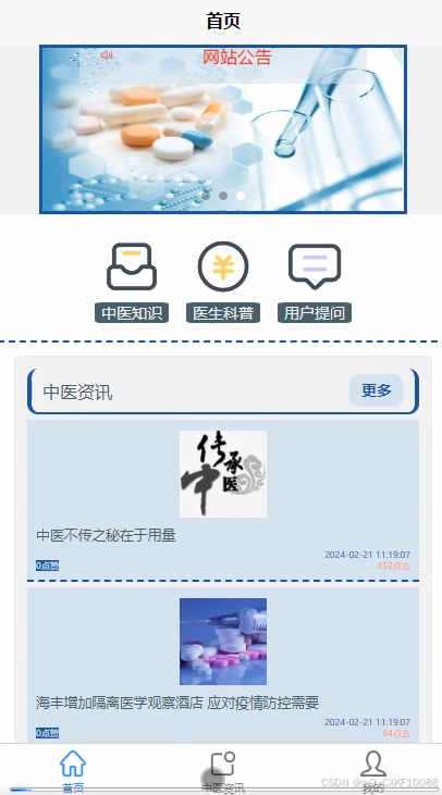 首页:展示论坛的最新内容,包括公告消息、中医知识、医生科普等。
