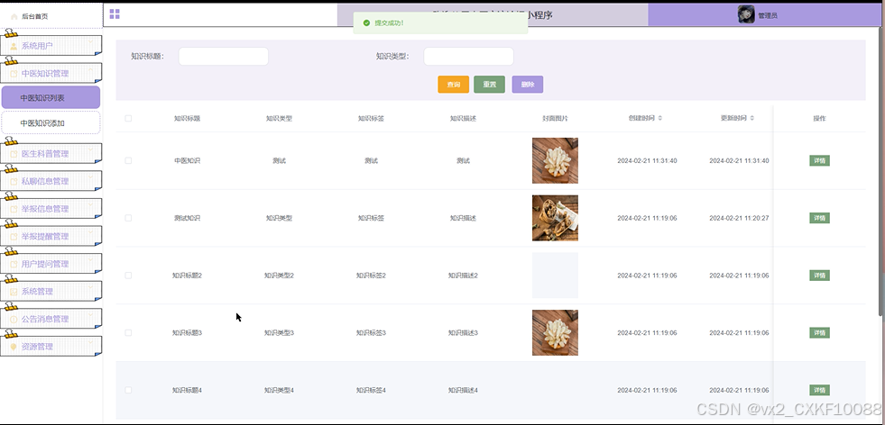 中医知识管理:管理员可以发布、编辑和删除中医知识内容。