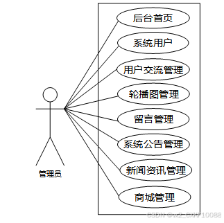 系功能模块分成了管理员、普通用户两个模块,每个模块登录进去对应相应的功能,具体的功能模块图如图3.1所示。