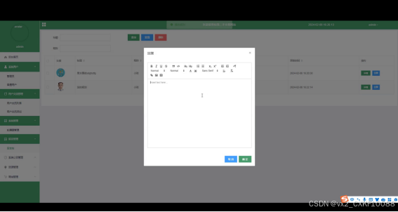 - 系统公告管理:管理员可以发布、编辑和删除系统公告,向用户传达重要信息。可以设置公告的展示时间和优先级。