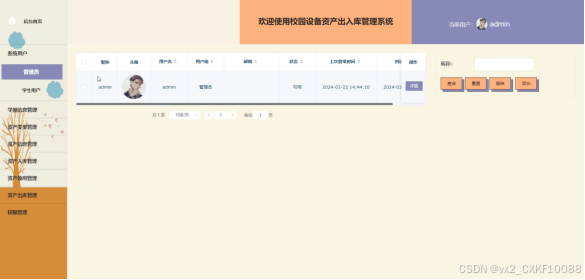 Keywords: campus equipment assets entry and exit management system, SpringBoot framework, Mysql database: