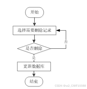 用户可选择要删除的信息进行信息删除操作,在删除信息时系统提示是否确定删除信息,是则删除信息成功,系统数据库将信息进行删除。删除信息流程图如图2-5所示。
