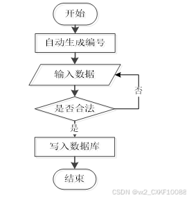 用户在添加信息时,信息编号自动生成,系统会对添加的信息进行验证,验证通过则添加至数据库,添加信息成功,反之添加失败。添加信息流程如图2-4所示。