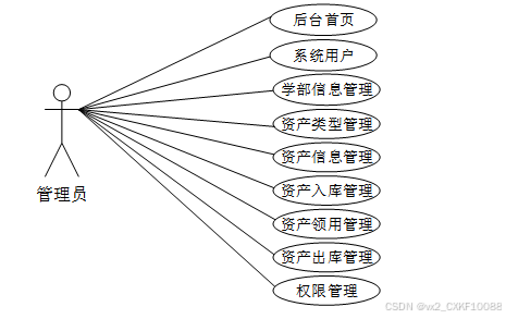 校园设备资产出入库管理系统管理员角色用例图,如下图: