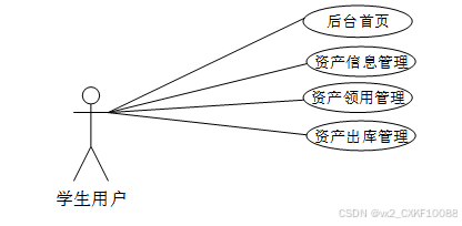 校园设备资产出入库管理系统学生用户角色用例图,如下图: