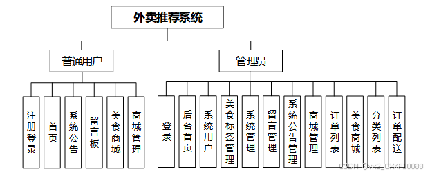 通过上一章节的功能需求分析,可以得出本外卖推荐系统的功能结构图,图3.1就是系统的功能模块图。
