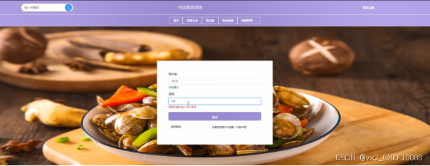 | 登录模块测试 | 登录失败的情况 | 使用者可以通过浏览器进入到外卖推荐系统登录界面,输入用户名:admin和密码111,完成滑动拼图验证后,点击“登录”按钮。 | 系统提示“用户名和密码不匹配” | 正确 |