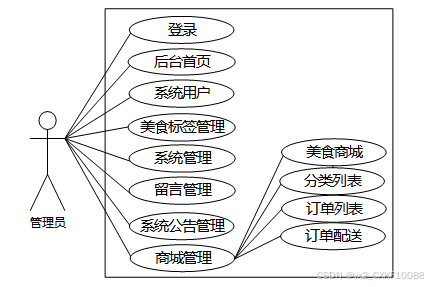 (8)商城管理:管理员点击可查看美食商城、分类列表、订单列表和订单配送。点击“美食商城”,上传封面图和主图,输入标签、描述、原价、卖价、库存,选择分类,输入美食规格、美食口味,选择美食标签,输入正文,点击“提交”按钮进行添加美食商品。