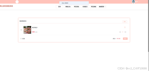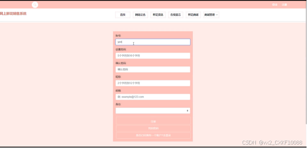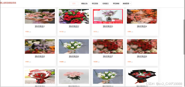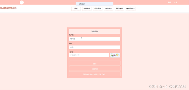 首页: 展示网站的主要功能入口、最新的网站公告、鲜花资讯等内容,引导用户浏览网站。