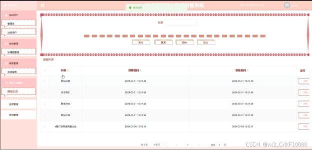 网站公告管理: 管理系统发布的通知和公告信息,确保信息及时有效。