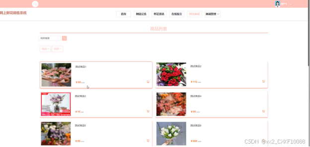 鲜花商城: 提供用户在线浏览、购买鲜花的功能,包括浏览商品、下单购买等。