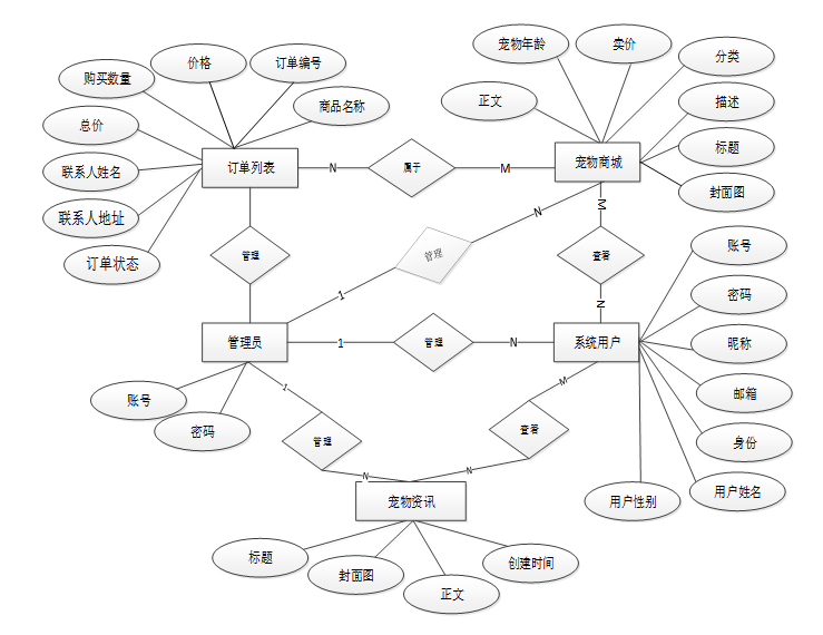 下面是整个基于Python的宠物店管理系统中主要的数据库表总E-R实体关系图。
