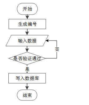 用户成功登入系统后就能够实现增加数据的操作,增加数据的编号由系统生成,用户不能随意填写,除了编号以外,其他增加信息用户自己填写,填写后的信息需经过系统验证,验证通过后即可完成数据新增,数据新增的流程图如下图2-1所示。