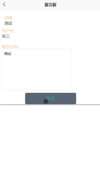 - 点击“留言板”,可查看自己的留言板信息,支持标题搜索,可点击查看详情(标题、用户名、留言内容),并可点击发布内容(留言内容);