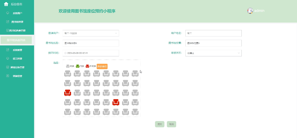 5.2.3 图书馆选座管理界面