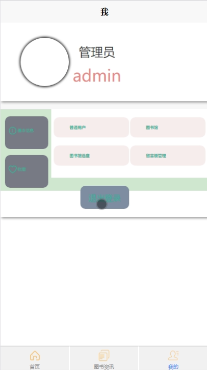 - 我的:可对基本信息、收藏、图书馆选座等信息进行管控。具体如下: