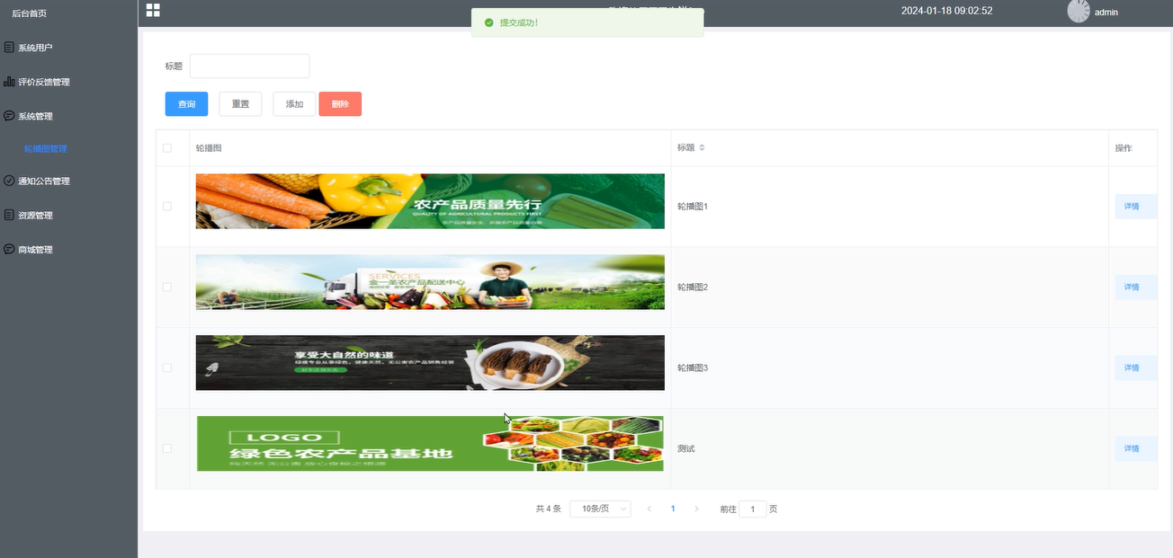 轮播图展示,管理员通过输入标题、轮播图等操作提交,如图5-9所示。