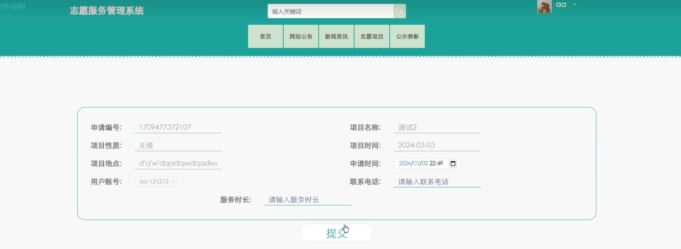 | 预期结果 | 提交以后,页面首页会显示新的志愿项目 |