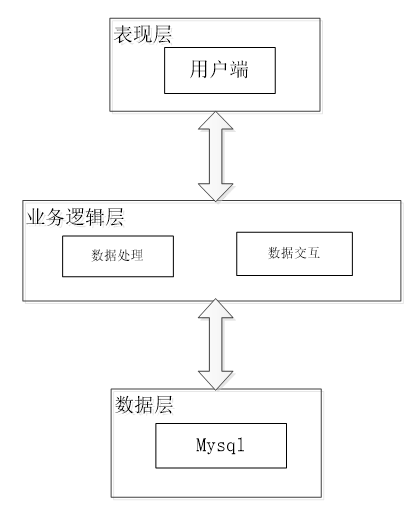 本志愿服务管理系统从架构上分为三层:表现层(UI)、业务逻辑层(BLL)以及数据层(DL)。