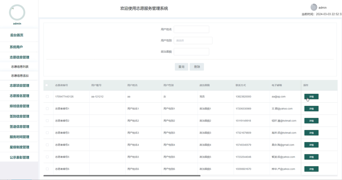 社会的进步和发展,志愿者服务在推动社会和谐与发展中起着重要作用。然而,随着志愿者队伍规模的不断扩大和志愿者活动的复杂性增加,传统的手工管理方式已经无法满足日益增长的需求。因此,研究开发一套高效的志愿者服务管理系统。首先,志愿者服务管理系统能够实现志愿者资源的合理调配和优化利用。通过系统化的志愿者招募、培训和分配,可以确保志愿者队伍的结构多样性和专业性,提高志愿者的工作效率和满意度,从而更好地服务社会各个领域的需求。其次,志愿者服务管理系统能够实现志愿者活动的信息化管理。通过建立统一的志愿者活动平台,可以方便志愿者了解和参与各类志愿者活动,并实时获取相关信息和任务指派。同时,系统也可以对志愿者的工作情况进行监督和评估,保证志愿者活动的质量和效果。同时,志愿者服务管理系统还能够提供数据支持和决策参考。通过对志愿者服务活动的数据进行统计和分析,可以了解志愿者队伍的构成、服务范围和效果等信息,为相关决策提供科学依据,推动志愿者服务的可持续发展。