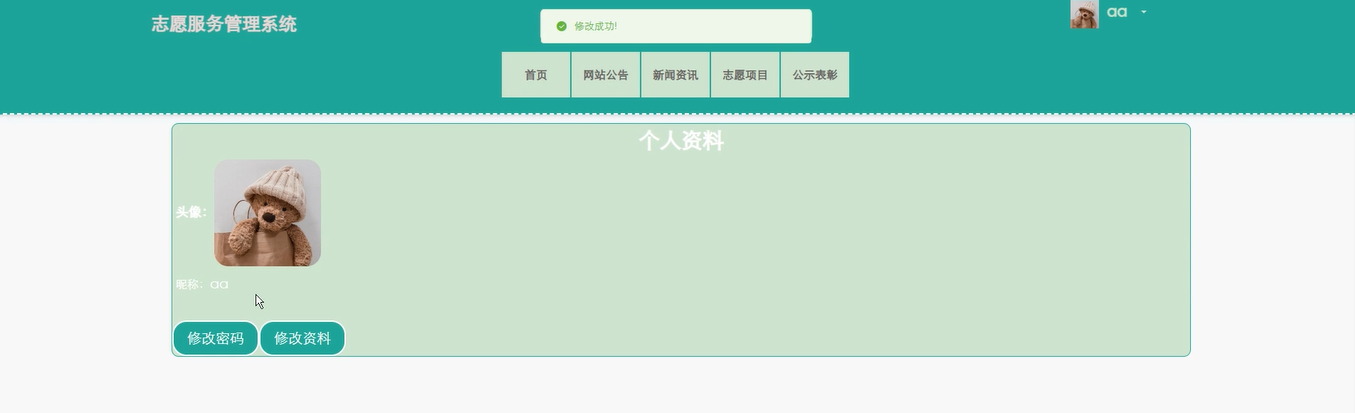 (1)用户注册登录:用户注册为普通用户并登录志愿服务管理系统;用户对个人信息的增删改查,比如个人资料,密码修改。
