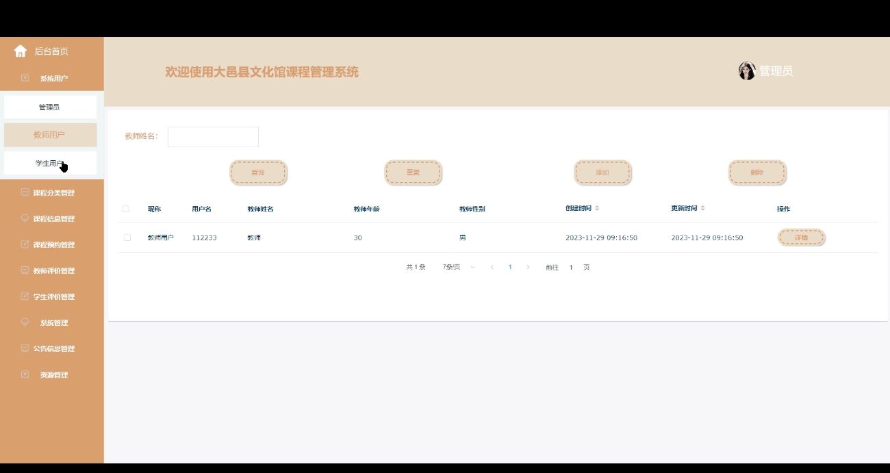 - 系统用户管理:管理员可以管理系统用户,包括添加、修改和删除管理员、教师用户和学生用户的账号和权限信息。