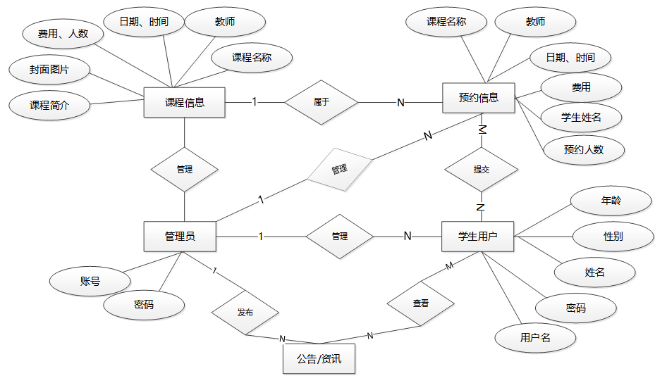 图3.2 大邑县文化馆课程管理系统总E-R关系图