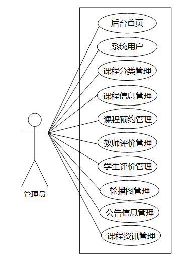 大邑县文化馆课程管理系统中管理员用户角色用例图如图2.2所示: