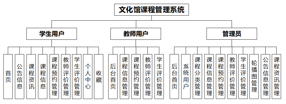 图3.1 大邑县文化馆课程管理系统功能模块图