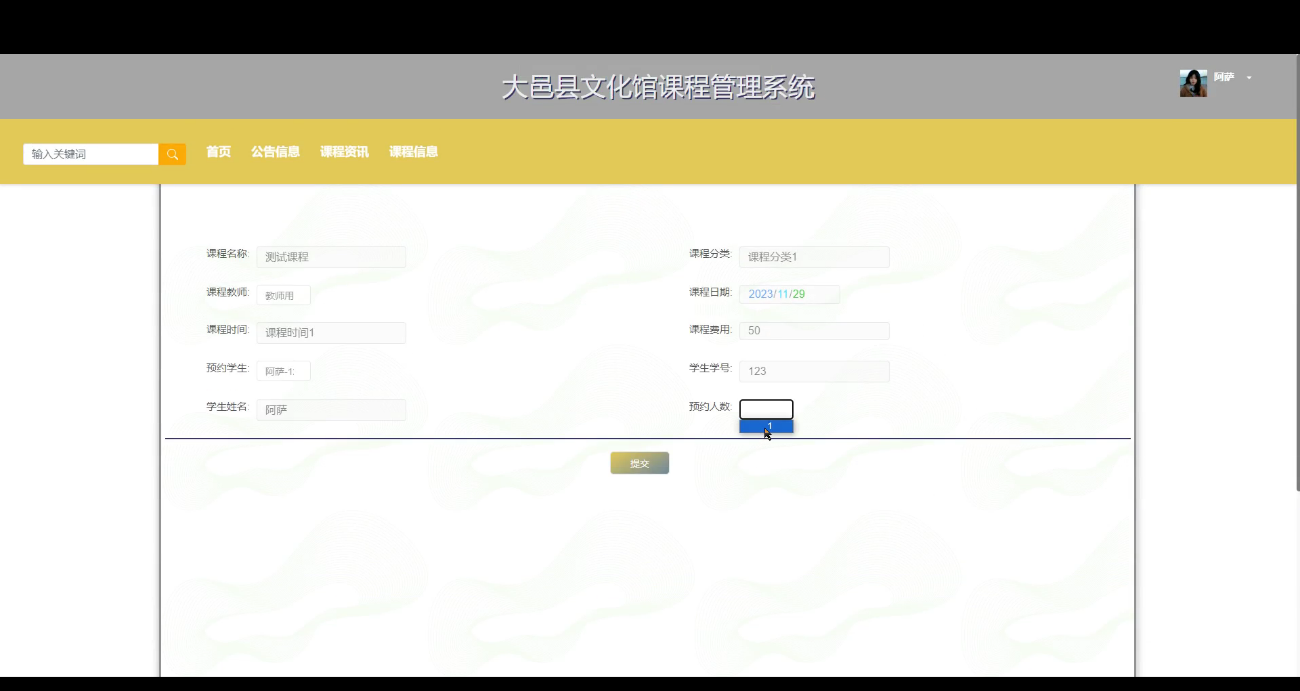 - 公告信息:学生可以查看学校或文化馆发布的公告信息,包括活动通知、重要通知等。
