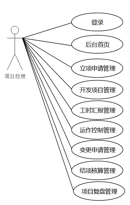 图2-9研发项目人员投入工时管理系统项目经理角色用例图