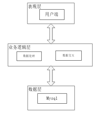 数据层(DL):由于本系统的数据是放在服务端的mysql数据库中,因此本属于服务层的部分可以直接整合在业务逻辑层中,所以数据层中只有数据库,其主要完成本系统的数据存储和管理功能。
