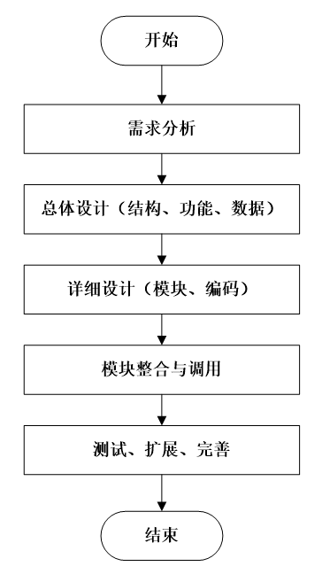 研发项目人员投入工时管理系统开发时,首先进行需求分析,进而对系统进行总体的设计规划,设计系统功能模块,数据库的选择等,本系统的开发流程如图2-1所示。