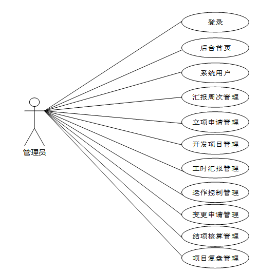 管理员是维护整个研发项目人员投入工时管理系统中所有数据信息的。管理员角色用例如图2-8所示。