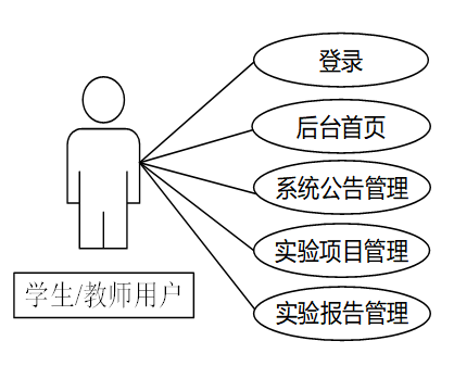 本计算机类实验报告管理系统分为三种用户,学生用户、教师用户和后台管理员,计算机类实验报告管理系统的系统用户(学生用户和教师用户)用例图如图2-2所示。
