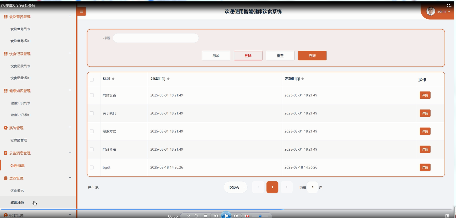 资源管理(饮食资讯、资讯分类):管理员可以管理饮食资讯的内容和分类,确保资讯内容的准确性和时效性。