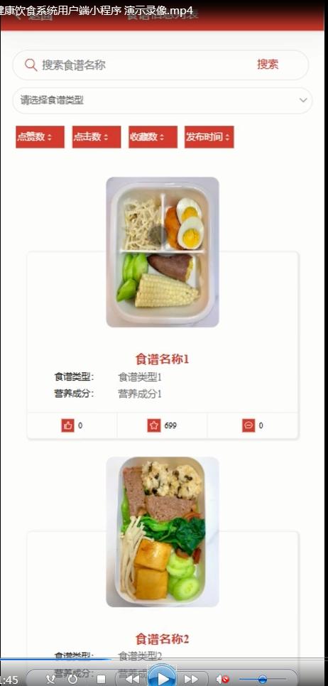 食谱信息:根据用户需求,系统推荐个性化的食谱,帮助用户制定科学合理的饮食计划。