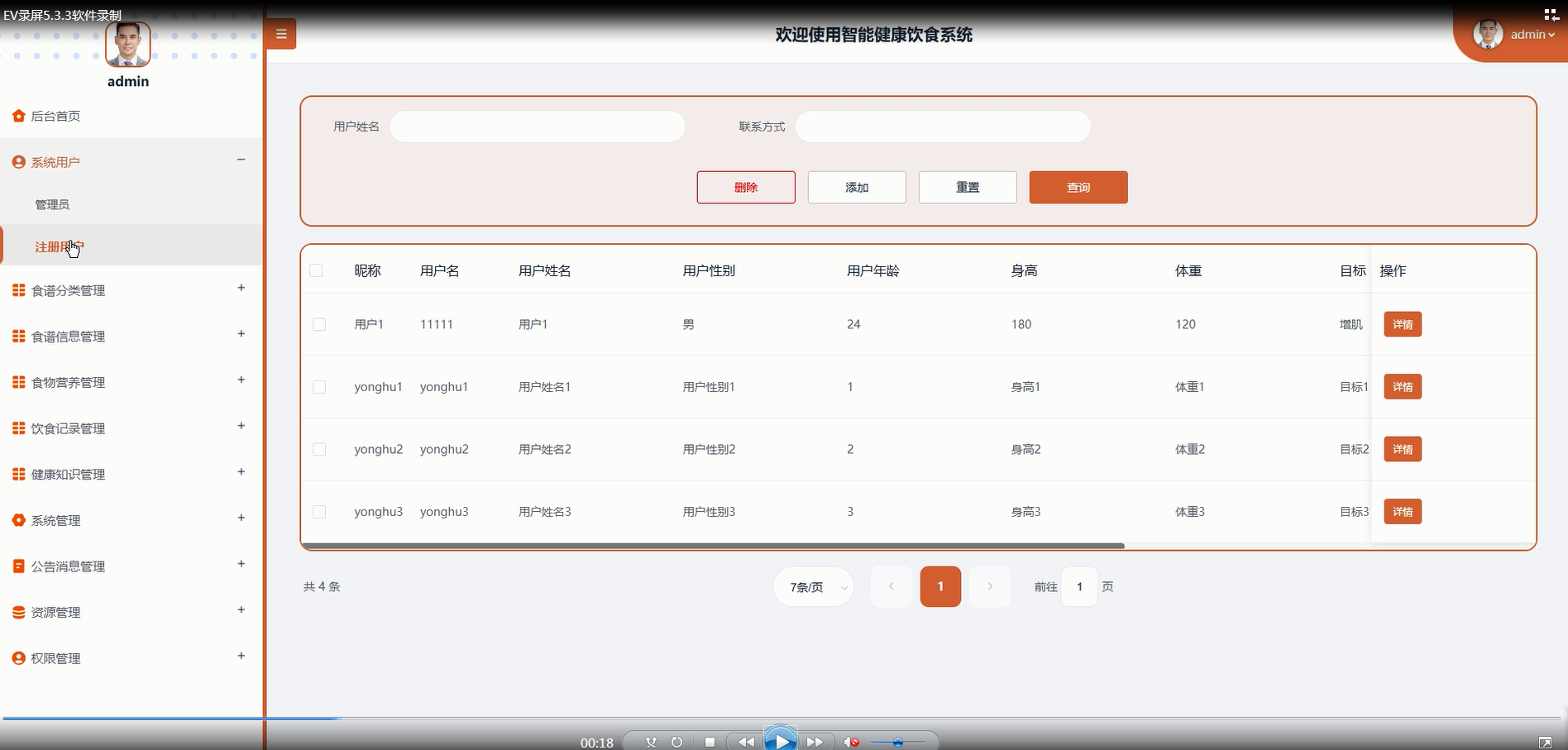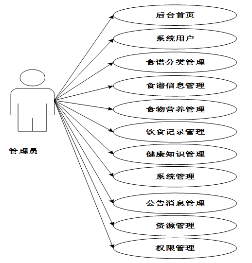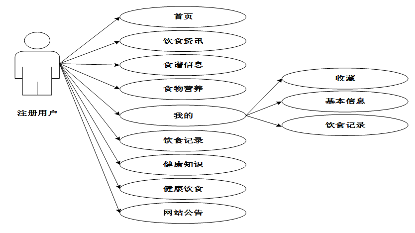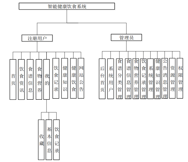智能健康饮食系统包含注册用户和管理员两大角色,主要功能如下:
