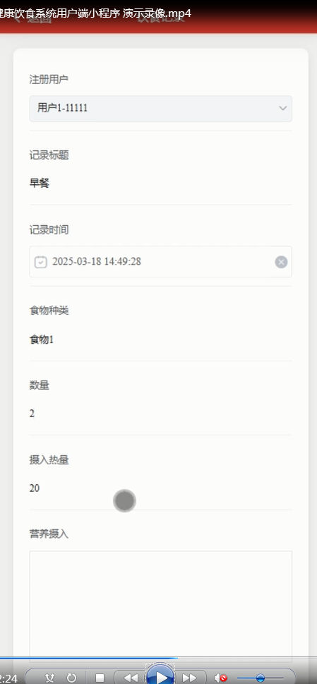 饮食记录:用户可以记录每天的饮食情况,系统根据记录提供健康饮食分析与建议。