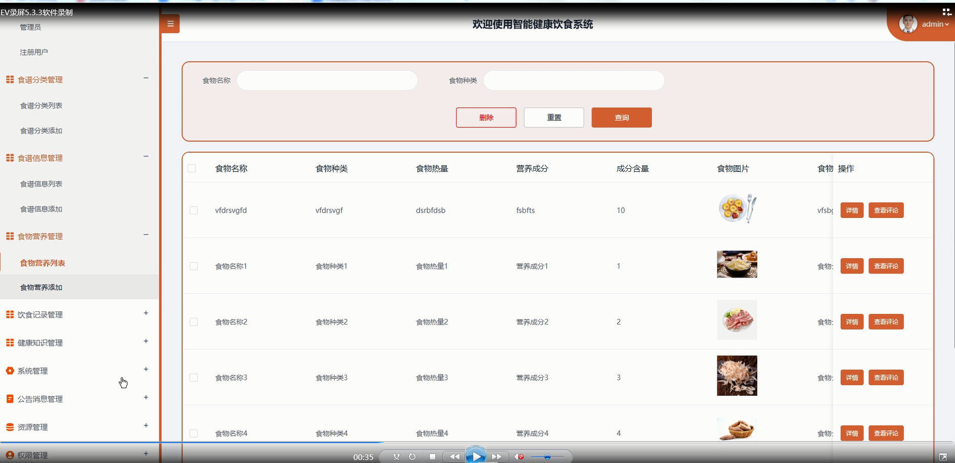 食物营养管理:管理食物的营养成分,包括食物的热量、蛋白质、脂肪等信息。