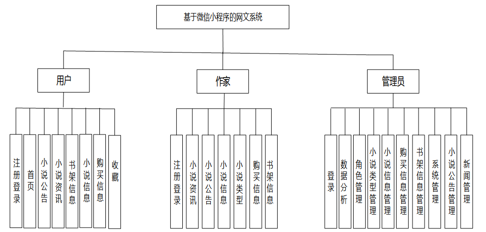 基于微信小程序的网文系统通过不同角色的功能模块,构建起完善的架构。具体功能分析如下: