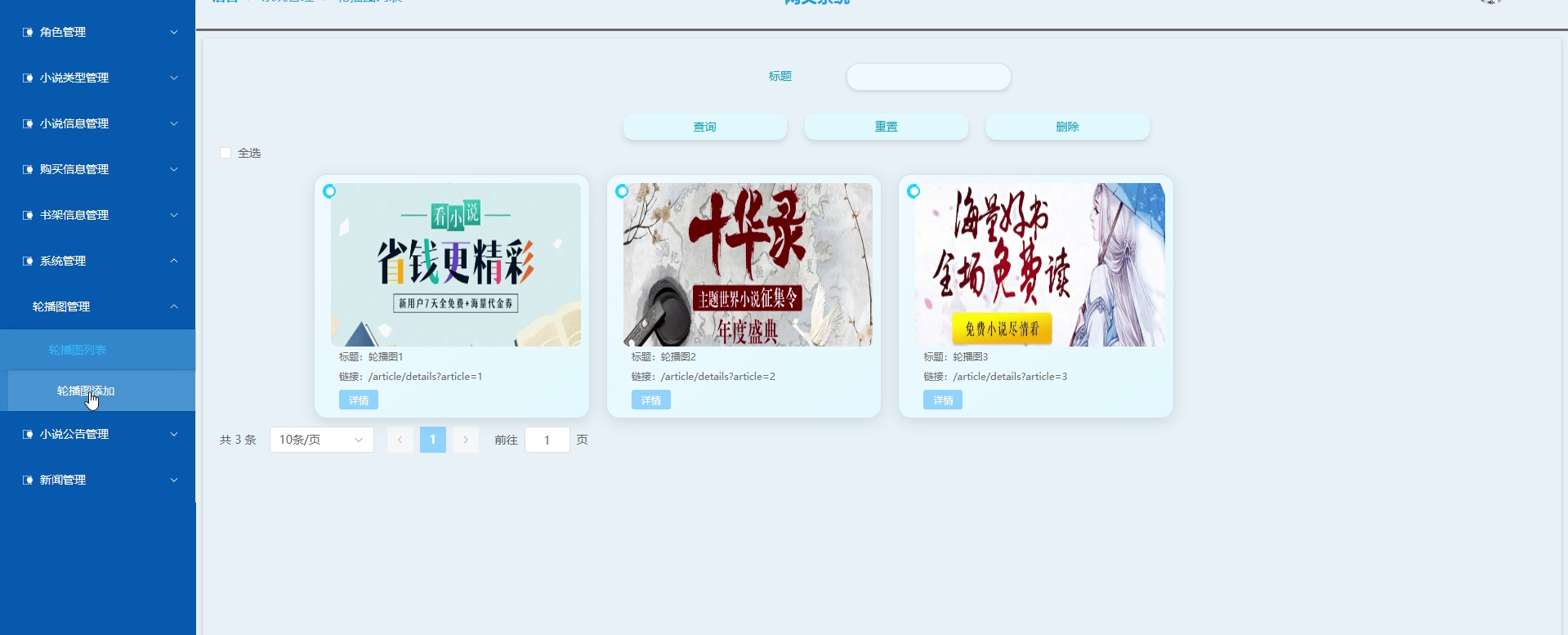 管理员点击系统管理模块后,可以对系统轮播图进行设置更换。其界面如下图所示。