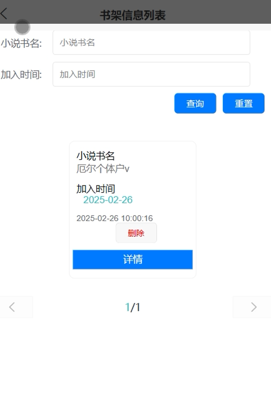 用户点可以将自己喜欢的小说添加至个人的书架信息,便于日常查找操作。其界面如下图所示。