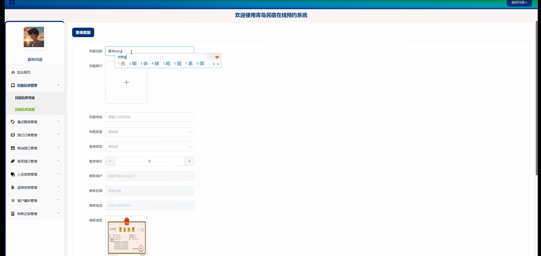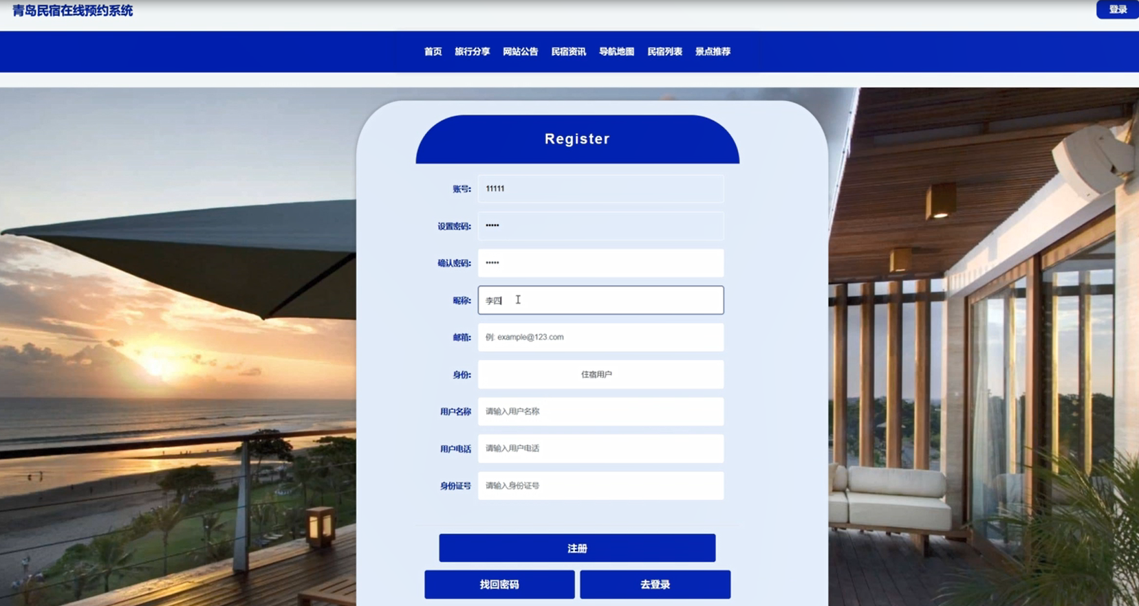 近年来,随着旅游业的蓬勃发展和人们旅游观念的变化,越来越多的游客倾向于选择具有地方特色、能够提供更加个性化住宿体验的民宿。青岛作为一个著名的海滨旅游城市,以其优美的自然风光、丰富的文化遗产吸引了大量国内外游客。然而,传统的民宿预订方式(如电话预订、现场预订等)存在信息不对称、效率低下等问题,难以满足现代游客对于便捷性和透明度的需求。