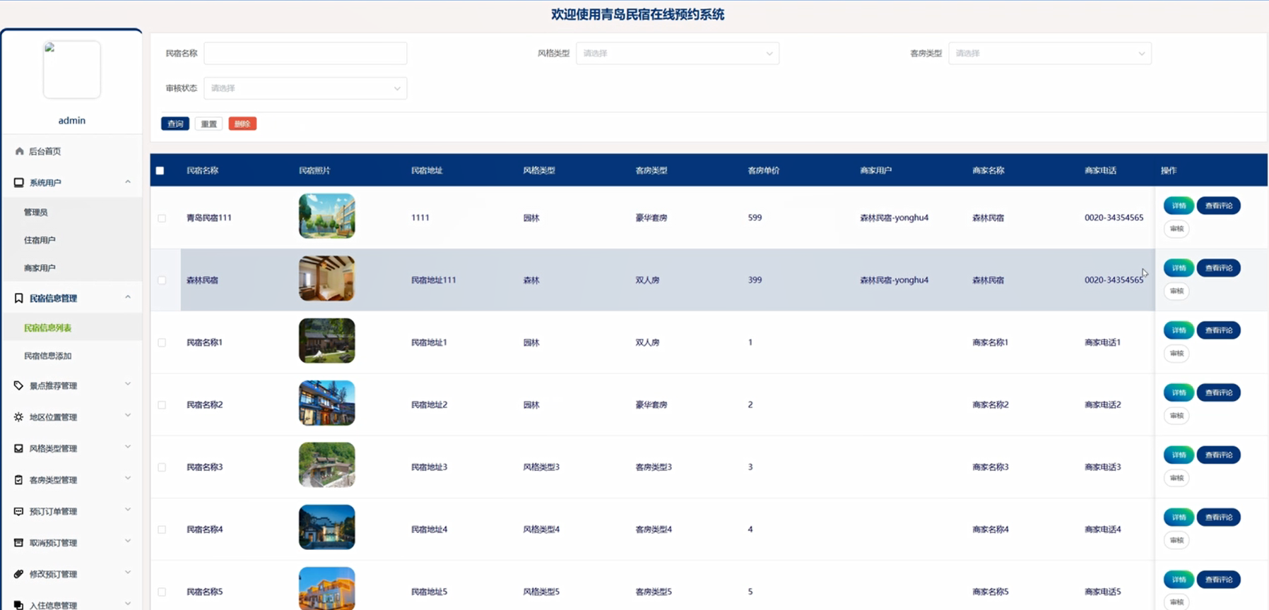 第五章:系统实现,主要介绍了青岛民宿在线预约系统各个用户的功能、系统界面的实现。