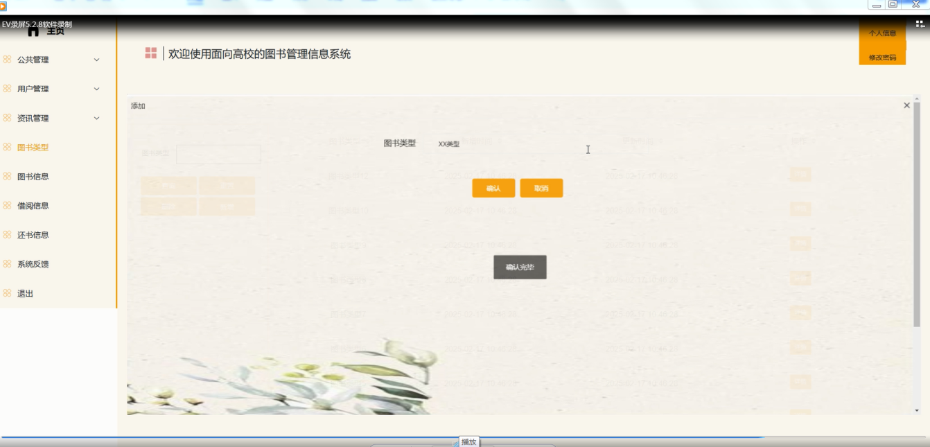 管理员可以通过该模块创建、修改或删除不同的图书类型,以适应图书馆资源的不断变化。同时,管理员还可以将图书与其所属的类别进行关联,确保每本书籍都能正确归类,方便用户在进行检索时通过分类筛选查找所需的图书。