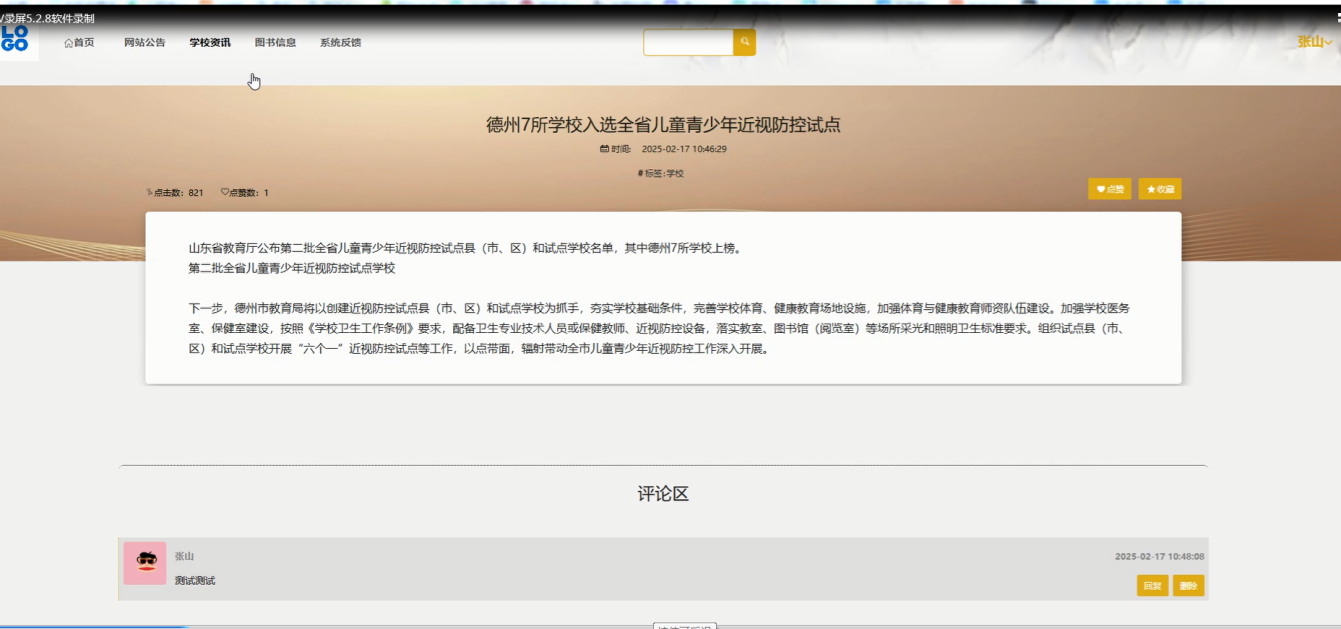 用户在资讯页面浏览学校资讯信息。通过分类标签筛选资讯类型,点击标题查看详细文章,页面提供评论区供用户交流心得。
