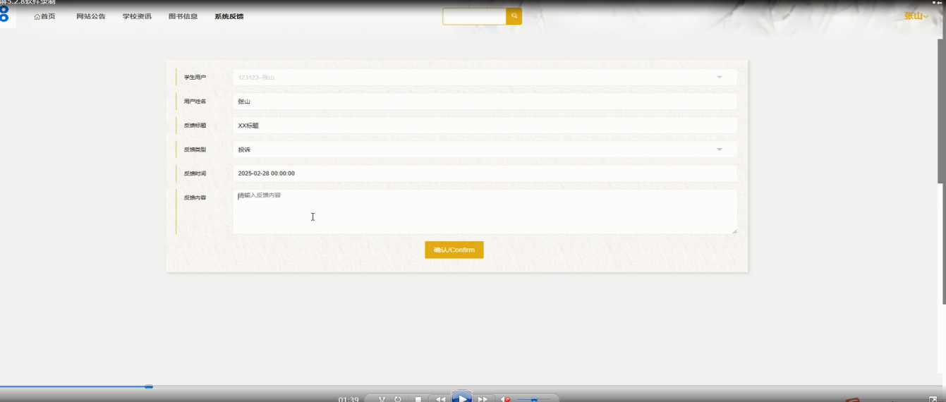 在使用过程中,学生可能会遇到各种问题或有改进建议。系统反馈功能允许学生提交意见和建议,反馈内容将被图书馆管理员查看,从而为系统的优化和服务质量的提升提供依据。