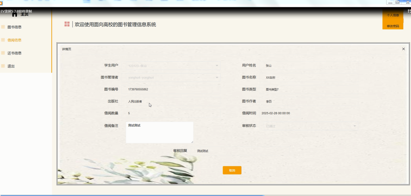 图书管理者可以查看学生的借阅申请,并根据图书的可借状态进行审核,确保借阅流程的顺畅。